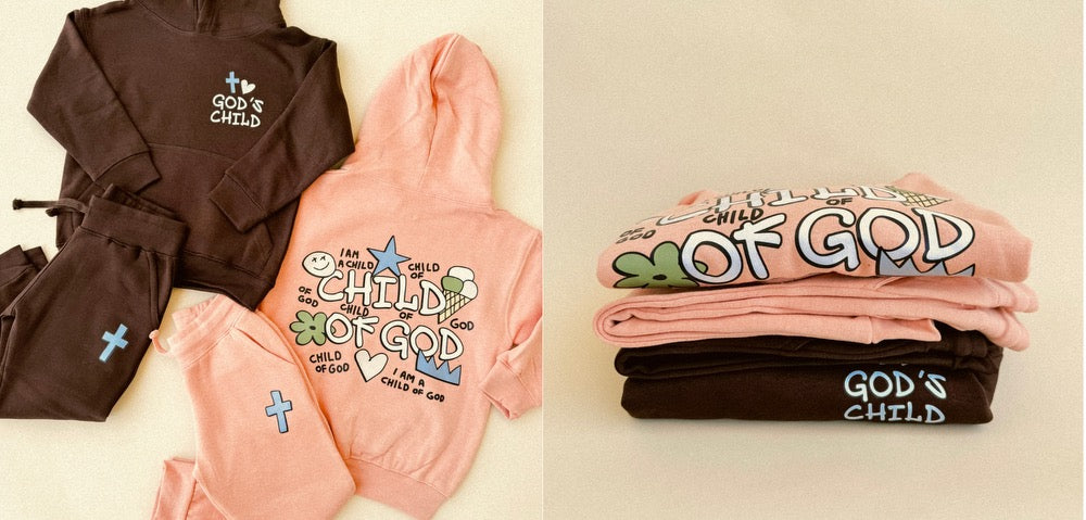 We're a Christian clothing brand created to speak truth, life, and love over children and families. Our mission is to remind the next generation of their identity in Christ through purposeful, comfortable apparel. With our faith driven designs, you can encourage hearts, spark meaningful conversations, and point back to the One we belong to!